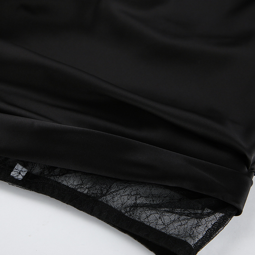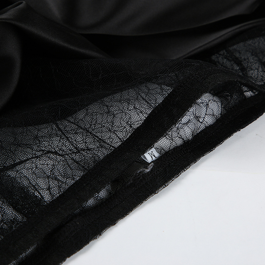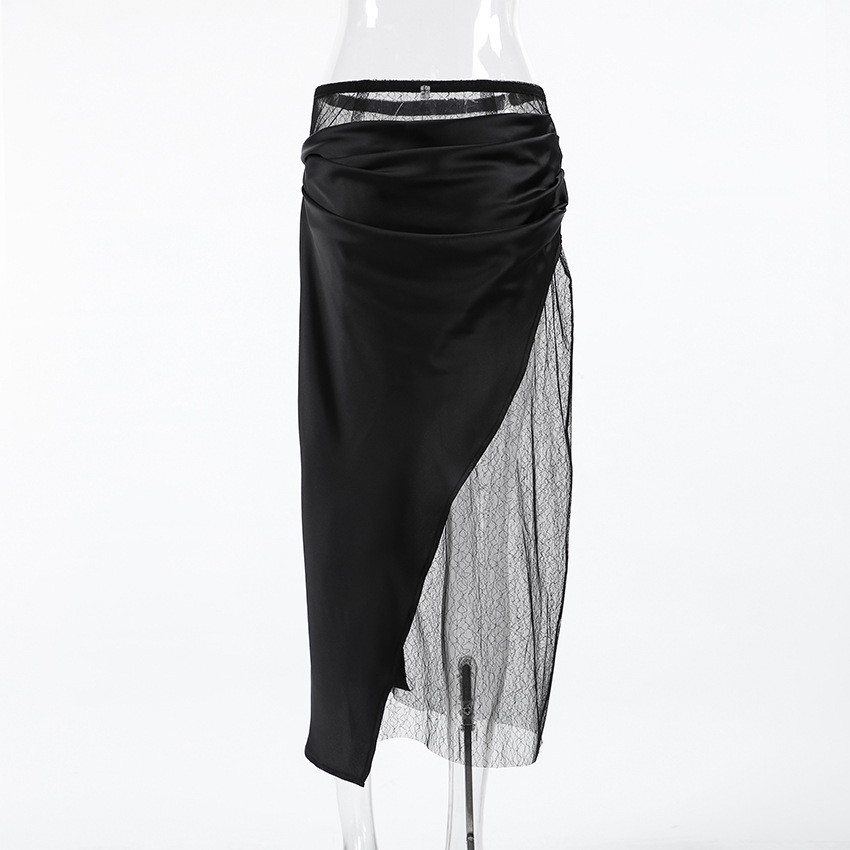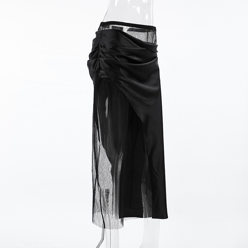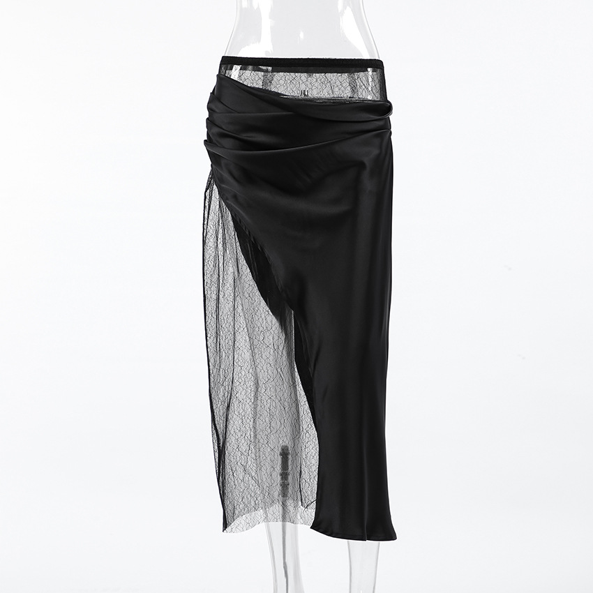 Black Hot Girl Lace Patchwork See-through Satin Skirt