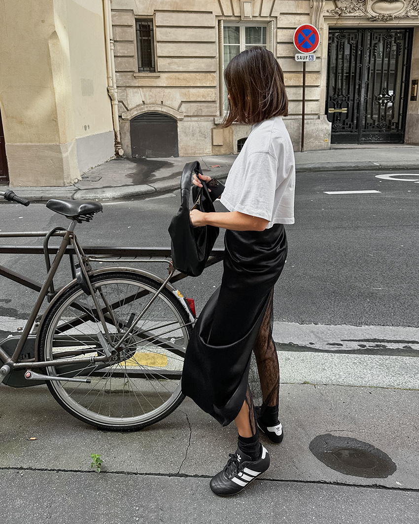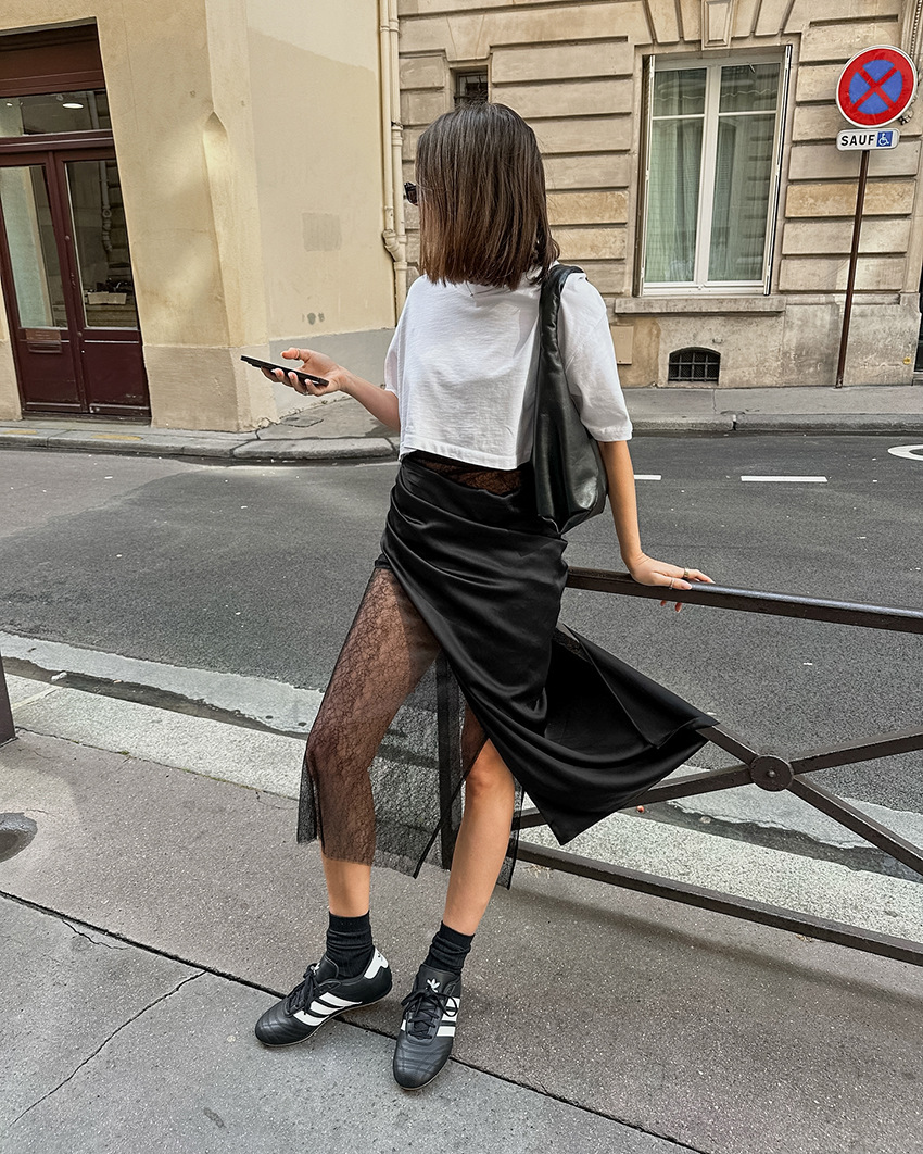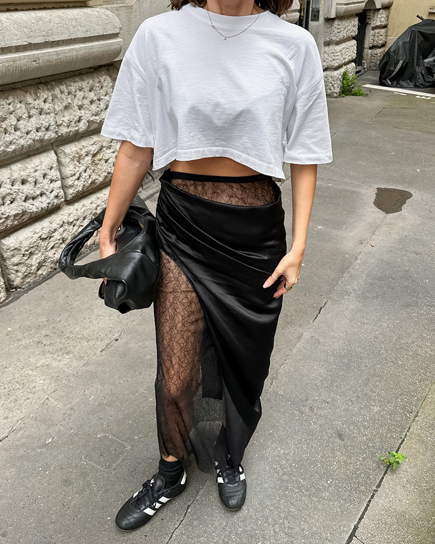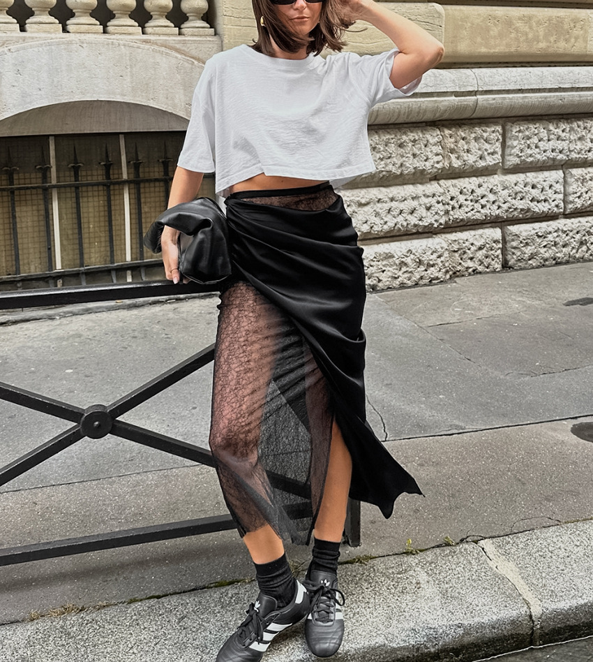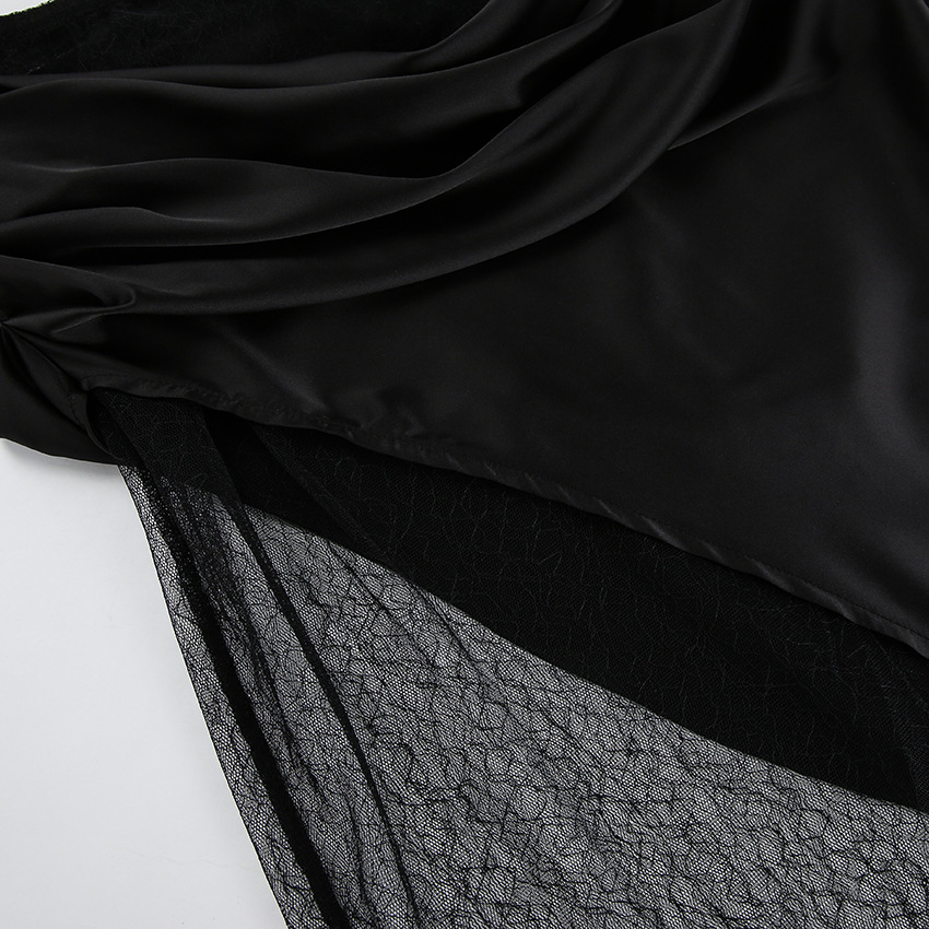 Black Hot Girl Lace Patchwork See-through Satin Skirt